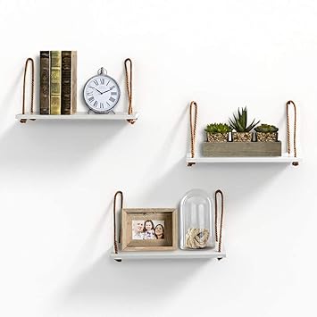 Ahdecor Rope Hanging Floating Shelves Wall Swing Storage Shelf For Home Decor White 3 Pack