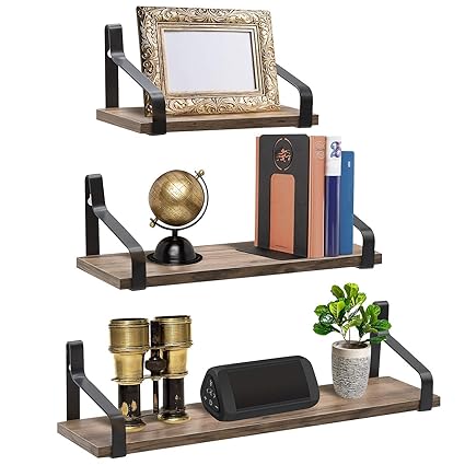 Sorbus Floating Shelves Wall Mounted Rustic Wood Home Decor Wall Shelves For Bedroom Living Room Bathroom Kitchen Office Set Of 3 Mahogany Wood