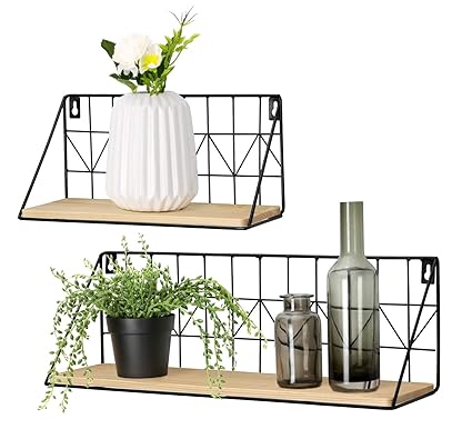 Mkono Wall Mounted Floating Shelves Set Of 2 Rustic Metal Wire Storage Shelves Display Racks Home Decor