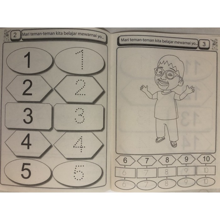 Pada aktivitas kali ini anak diminta menghitung jumlah benda yang ada di lajur kiri untuk kemudian dihubungkan dengan angka yang sesuai di lajur kanan. Dari wikibuku bahasa indonesia sumber buku teks bebas. Mewarnai angka untuk anak paud.