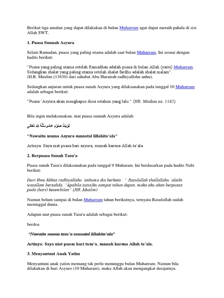 Niat Puasa Asyura Puasa Bulan Muharram Dan Tasu A Di Bulan