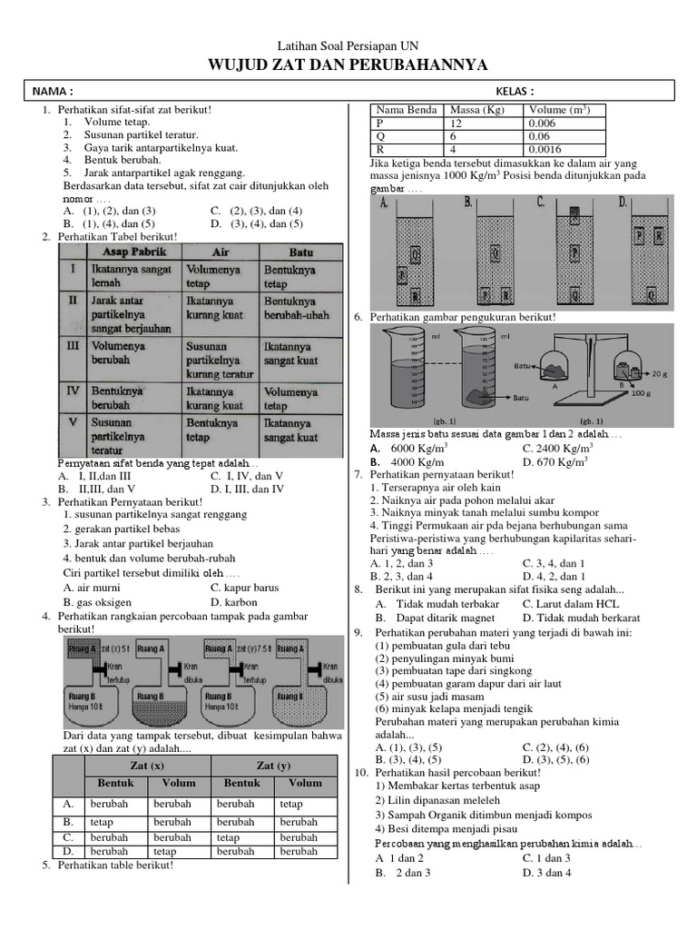 Latihan Soal Un Ipa Smp 2 Konsep Zat Wujud Dan Perubahanya