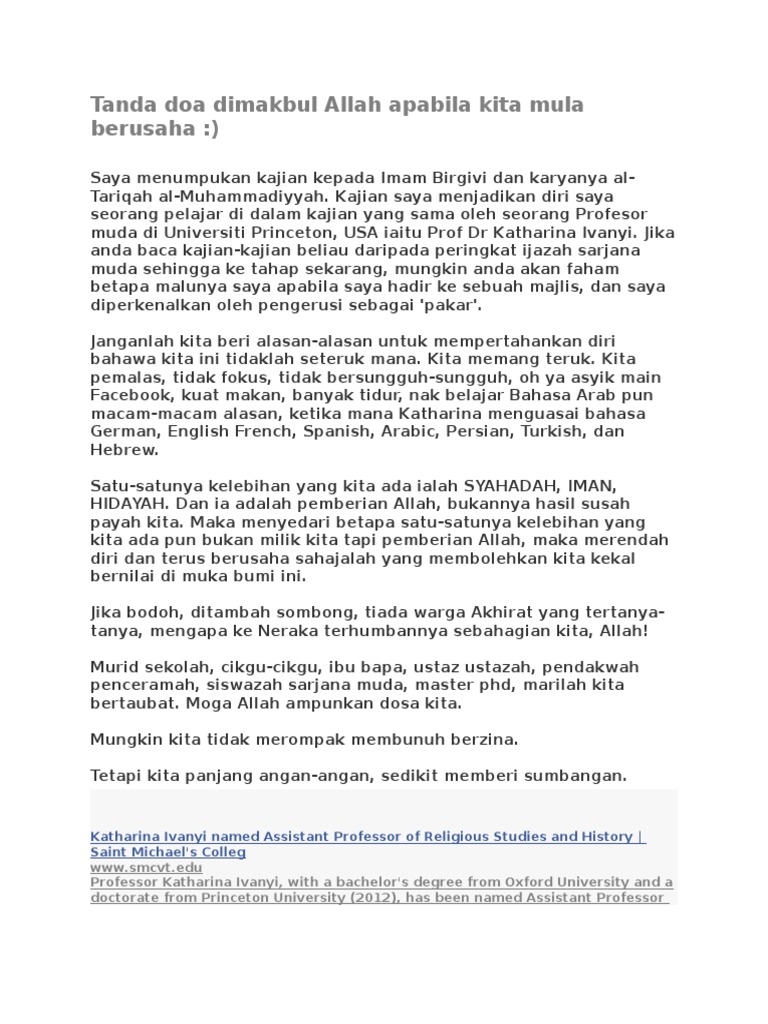Tanda Doa Dimakbul Allah Apabila Kita Mula Berusaha