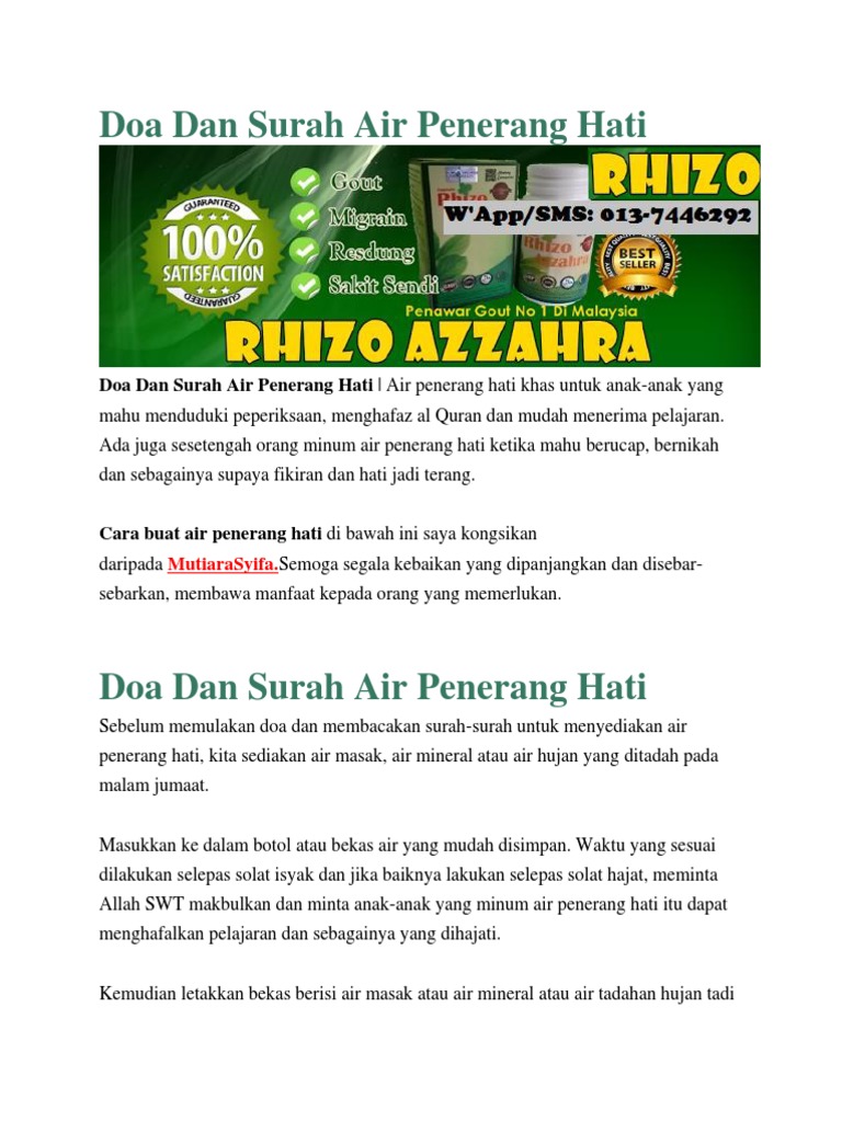 Doa doa dan cara membuat air penerang hati oleh ibubapa. Blog sirap limau.