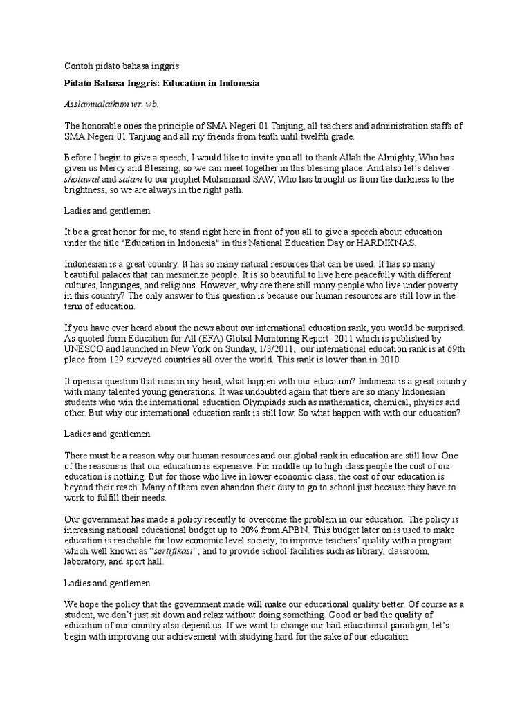Doc Contoh Naskah Pidato Bahasa Inggris Singkat Sulistiyo