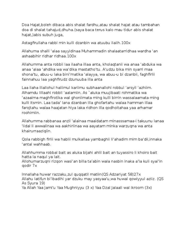 Doa Doa Docx Doa Sesudah Sholat Hajat Doa Sesudah Sholat