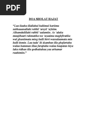 Ada juga yang mula belajar solat hajat apabila musibah menimpa. Boleh pula setelah membaca doa sholat hajat dilanjutkan dengan doa minta jodoh. Dua hajat wazaife raaahajat free download as pdf file pdf text file txt or read online for free.