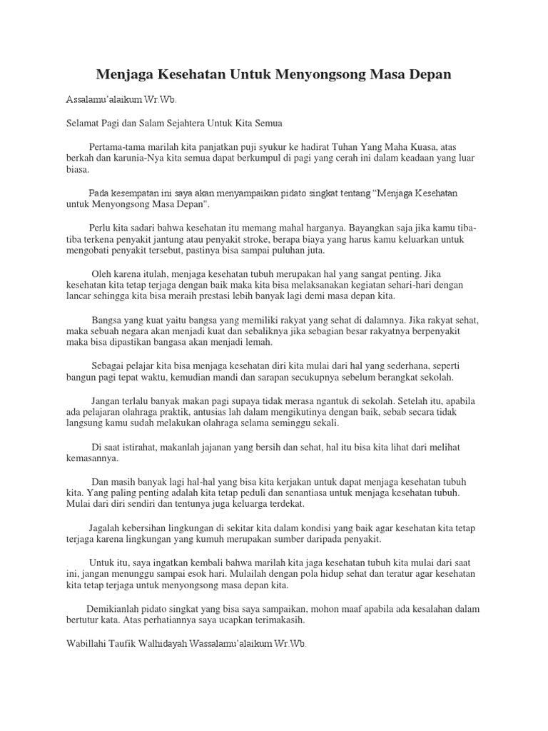 Pidato Tentang Kesehatan Beberapa Contoh Singkat Tema