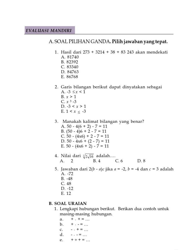 Temat teman pasi sudah belajar sebelumnya di sekolah masing masing tentang sebagian materi ini. Yang bisa digunakan untuk melengkapi administarsi guru yang dapat di unduh secara gratis dengan menekan tombol download. Soal dan kunci jawaban materi bilangan bulat.