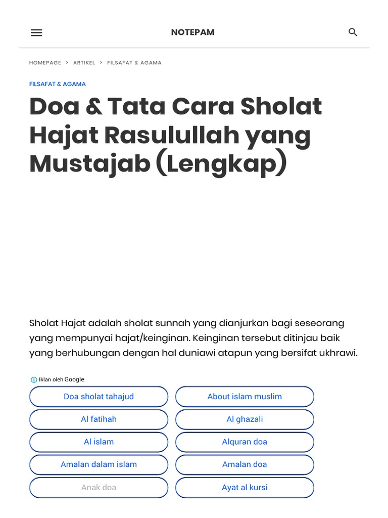Niat Dan Tata Cara Sholat Hajat Doa Sholat Hajat Yang
