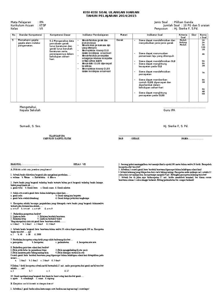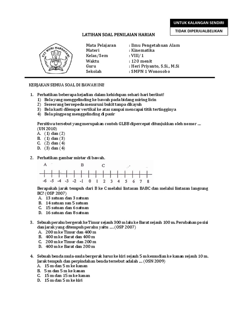 Latihan Soal Dan Penyelesaian Gerak Lurus Smp Mts Sekitar