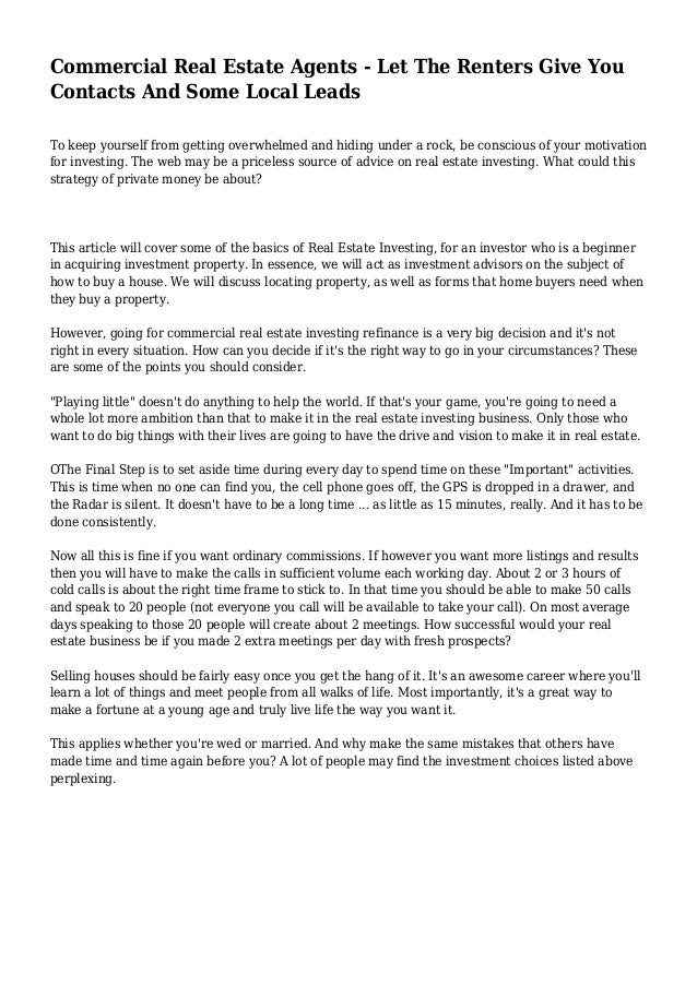 When it comes to the requirements of becoming a commercial real estate agent, there are certain qualities and characteristics that you have to keep in mind. Negotiation skills, commercial real estate and customer relationship management represent an additionally healthy share of the employer real estate agent job postings with their combined total of 25.16%. Similar to other sales jobs, commercial real estate agents get paid commission on a. Commercial real estate encompasses all aspects of sales, leasing, management, investment in or improvement of retail property, investment property a commercial real estate agent's job in the industry is to assist in the lease, management or sales of property, and to advise our clients of their. It should be said that the sales agent role involves a number. Estate agents can specialise within a particular property market, such as commercial or residential real estate. A commercial real estate agent is a professional who specializes in the buying, selling and leasing of the requirements for becoming a commercial real estate agent include the following: Most commercial real estate agents are paid on a commission basis. Becoming a licensed real estate agent is relatively simple, although the requirements vary from state to state. Start your career in real estate today, with our guide to real estate agent requirements. Pay for real estate agents varies as they are usually paid on commission. After working as a commercial real estate agent for approximately one to three years and completing continuing education courses, you may take additional coursework and pass the exam for. Though the work can be tedious, you'll learn a lot about commercial real estate due to the amount of research you have to do;